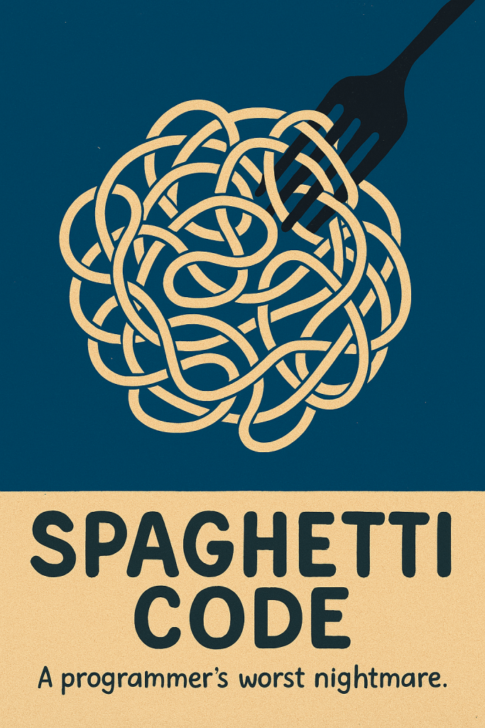 If you have ever looked at a piece of code and felt like you were staring at a plate of tangled noodles, you have probably met spaghetti code. It is messy, confusing, and hard to follow. Just like trying to pull one noodle from a bowl without dragging the whole thing with it.